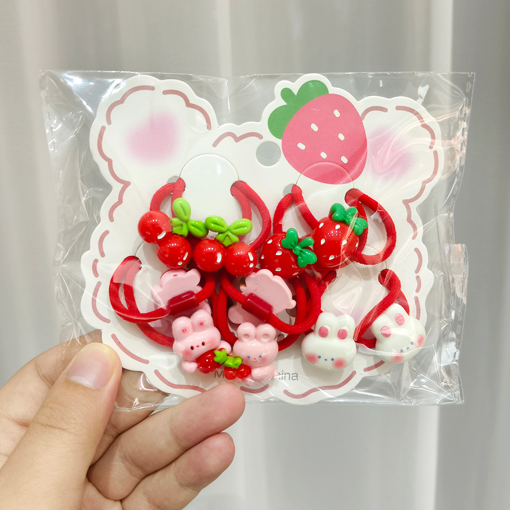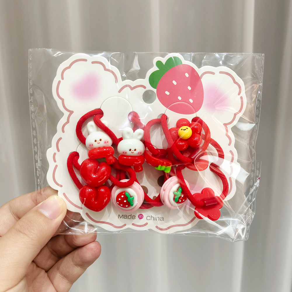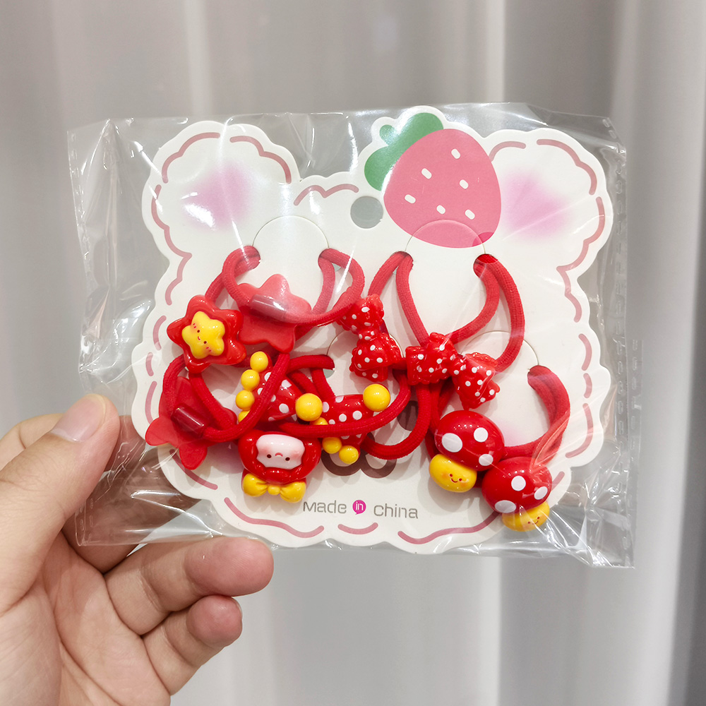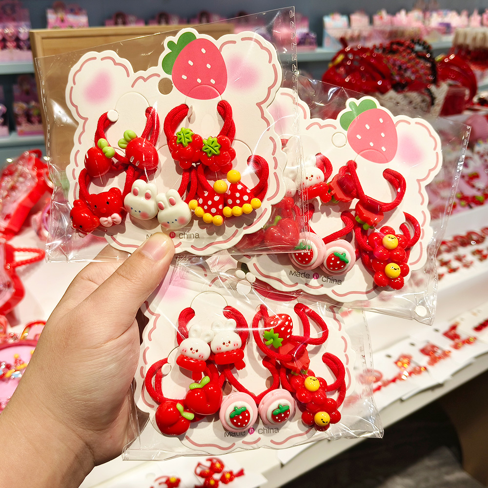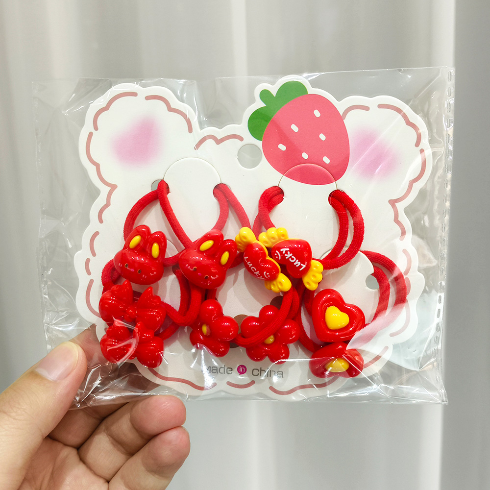 Festive Red Rubber Band Hair Tie Children's Hair Accessories Hair Tie Hand Tie Hair Rubber Band Cartoon Plastic Headtie Accessories